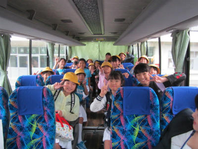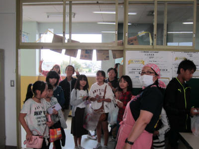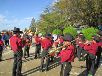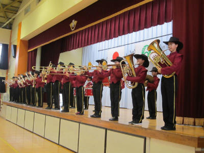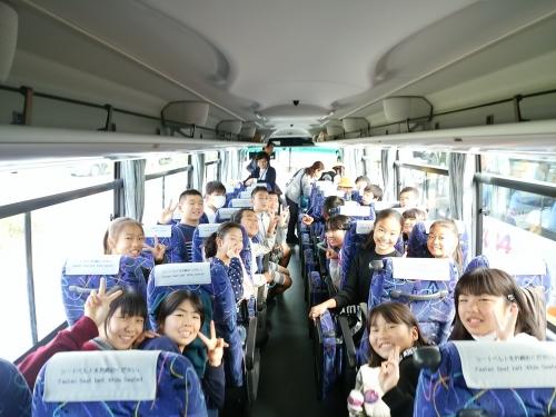 県の中央大会に出発する演奏クラブに声をかける子供たち