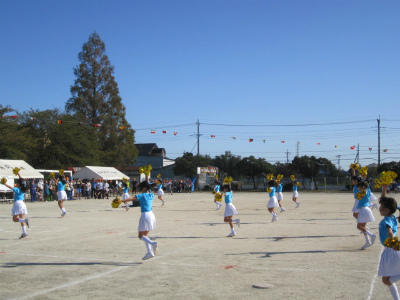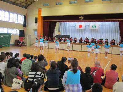 周りで見ている子供たちも、バトンクラブを真似して踊っています。