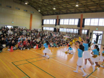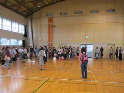 体育館では、この後の演劇鑑賞会の最後の確認中です。よろしくお願いします。
