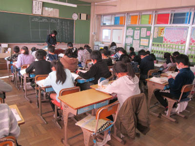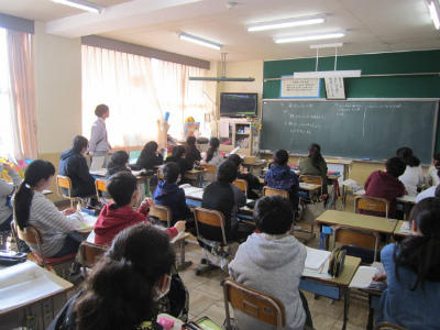 今日は、今年最後の高学年とたんぽぽ学級の授業参観でした。