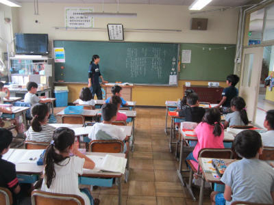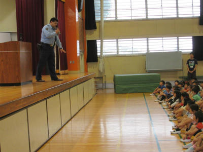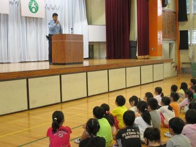 日頃子供たちの安全を守っていただいている富田警部補様から、「安全」についての講話をいただきました。