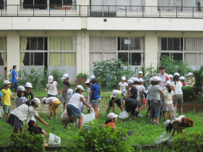 このところの雨で伸びきった雑草をとり、全校できれいにしました。
