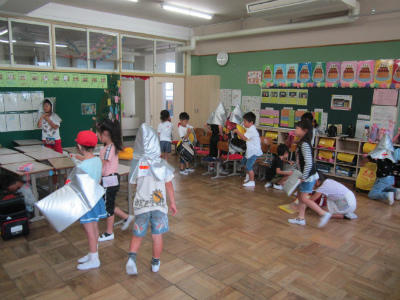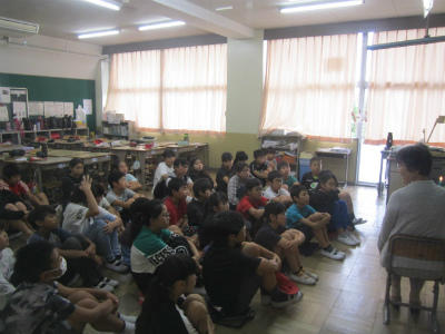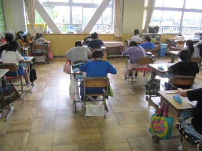 避難訓練後、朝の会を行っているたんぽぽ学級