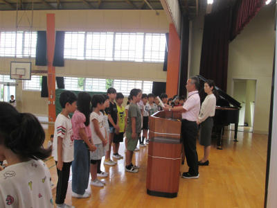 また夏休みに「豊野ギネス」にチャレンジできる自分の得意をつくるように話しました。その応援もお願いします。