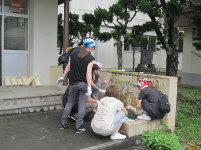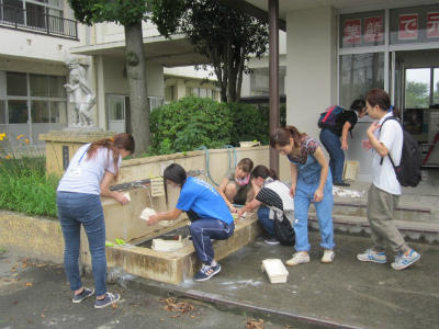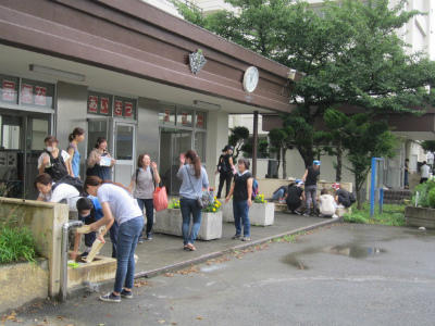 いろいろな場所に分かれて、洗ってくださる連係プレーは、さすが豊野小!