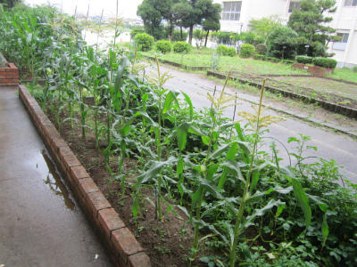 たんぽぽ学級のみんなが育てているとうもろこしも、大きく伸びています。