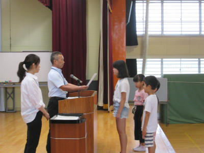 また夏休みに「豊野ギネス」にチャレンジできる自分の得意をつくるように話しました。その応援もお願いします。