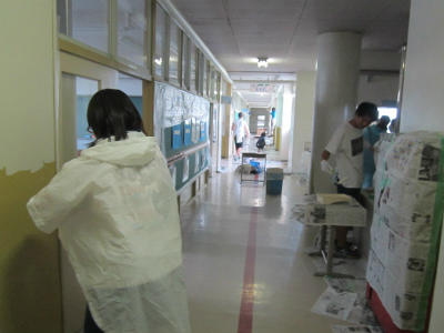 今年もPTAの役員を中心に、保護者と教職員で校舎の壁をペンキできれいにしました。