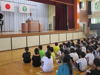 校長から、友達に優しい気持ちを持ち、自分のめあてに向けて、がんばろうとお話がありました。