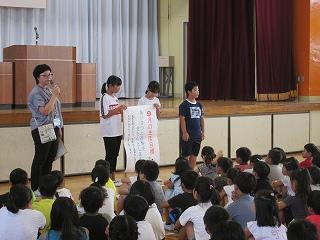 9月の生活目標について、担当と代表児童からお話です。