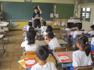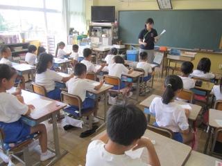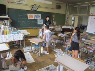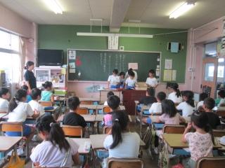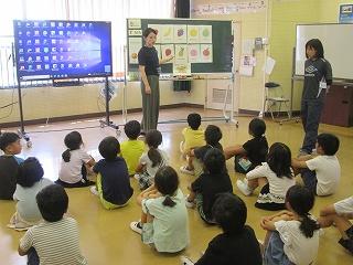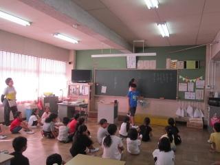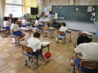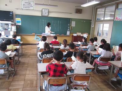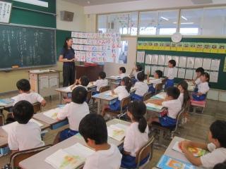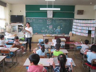 これから、おはなし会が始まります。みんな教室に戻ります。