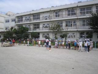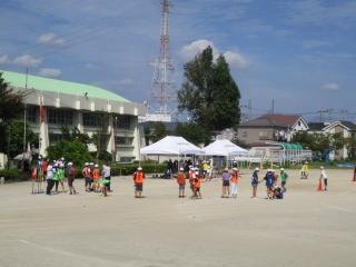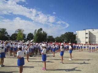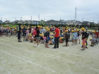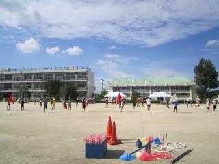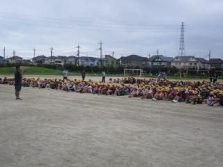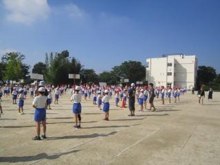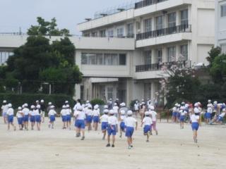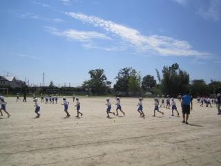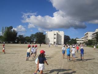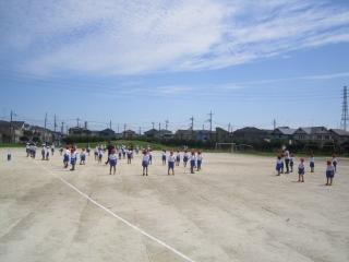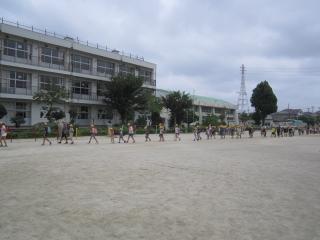 涼しい風の中、子供たちは、運動会練習のため校庭に集まってきました。