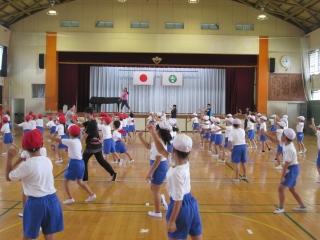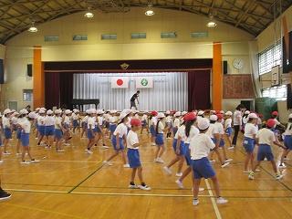 体育館では、中学年のダンスの練習が始まりました。