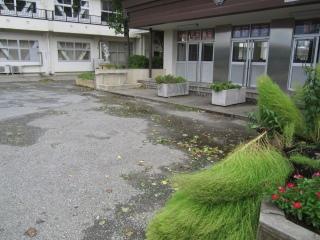 花壇の花も、根元から折れてしまいました。