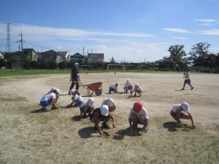 運動会を控え、今朝は全校で除草を行いました。