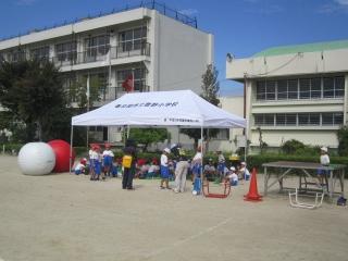 当初午前中に設置する予定の児童用テントは、天候を考え立てないことにしました。