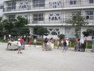 運動会の準備を高学年が行いました。