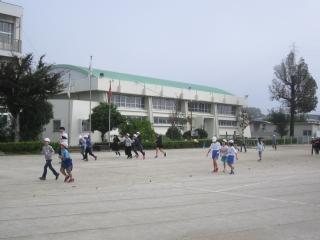 朝から気持ちよく晴れた校庭は、子供たちでいっぱいです。