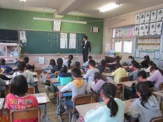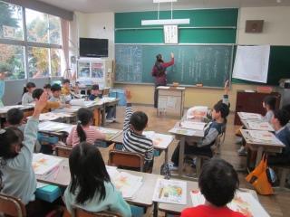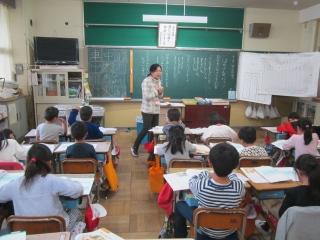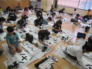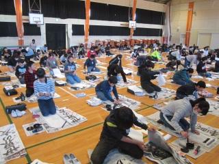 今日は、校内書きぞめ競書会です。体育館で中学年が行っています。