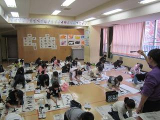 低学年も、それぞれの教室で書きぞめ競書会に取り組んでいます。