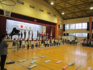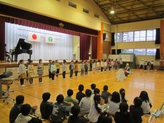 今朝の音楽朝会は、1年生と2年生の発表です。