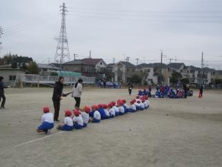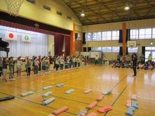 雨のため、体育館で開会式を行い、レースまで待機することにしました。
