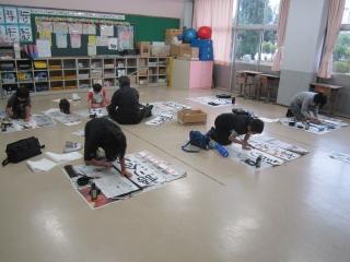 続いて、高学年が書きぞめ競書会に取り組んでいます。