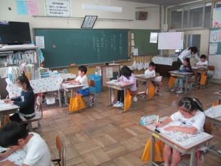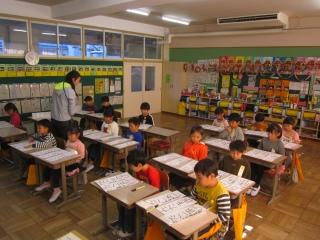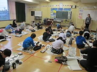 低学年も、それぞれの教室で書きぞめ競書会に取り組んでいます。