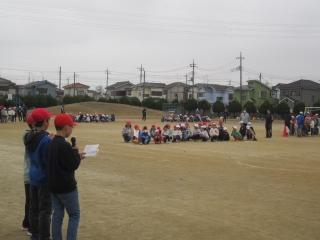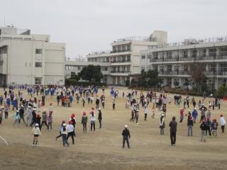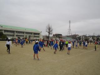 校庭いっぱいにコートを作って、縦割りチームのドッジボール大会