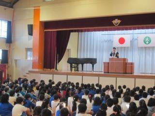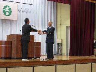 22年間、交通安全指導員としてお勤めいただいた功績に対し、感謝状をお渡ししました。そして、全校児童からお礼を言いました。