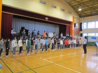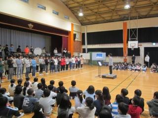 5年音楽朝会、発表! 投稿日時 : 2020/01/29 編集長 カテゴリ: 今朝の音楽朝会は、5年生の発表でした。 映画「天気の子」の曲を全員で演奏しました。 発表後、担任と校長から、今までのがんばりを褒められていました。