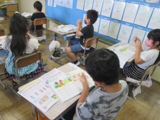 全員で読んだり、一人ずつ読んだりします。