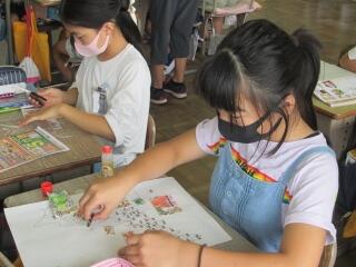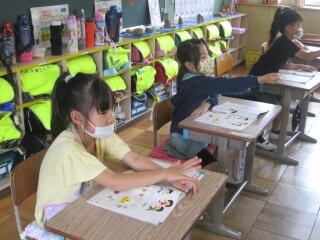 2年生が以前描いた下絵に色をつけていました。