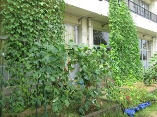 学校の花や野菜は、陽の光をおもいっきり浴びて