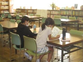 涼しい図書室で本を読んだり、学習したりの豊野っ子たち。