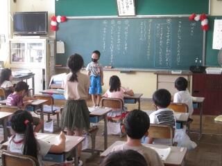 朝、持って来た絵の具セットを嬉しそうに見せてくれた1年生。