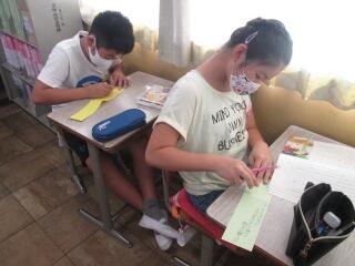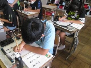 今日は大画面で先生の手元を見ながら、ノートの書き方を学んでいました。