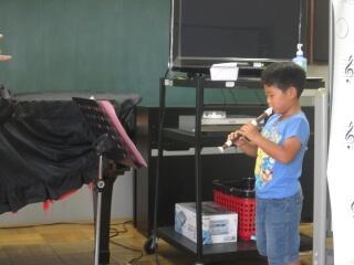伴奏に合わせて、一人ずつリコーダーを吹いていました。