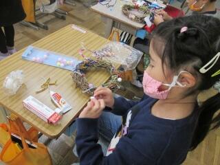 思い思いに飾りつけ、素敵なリースを完成させました。