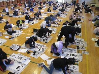 練習時とは違う場所の体育館や視聴覚室で清書しました。