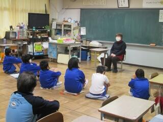 今日の朝会は、豊野派出所の警部補さんに来ていただき、