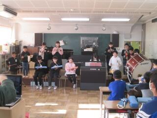 音楽室では、5年生が合奏の発表中。