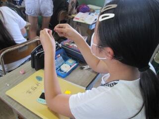 初めての裁縫の子が多く、針に糸を通すのも一苦労。