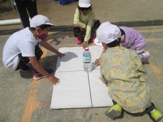 コロナ禍なので、大型かるたで体育館で行いました。春日部の歴史もいろいろ学べました。