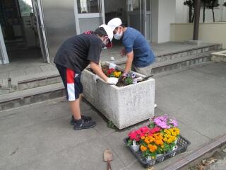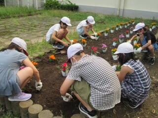 園芸委員会の子どもたちが花の苗を植えました。