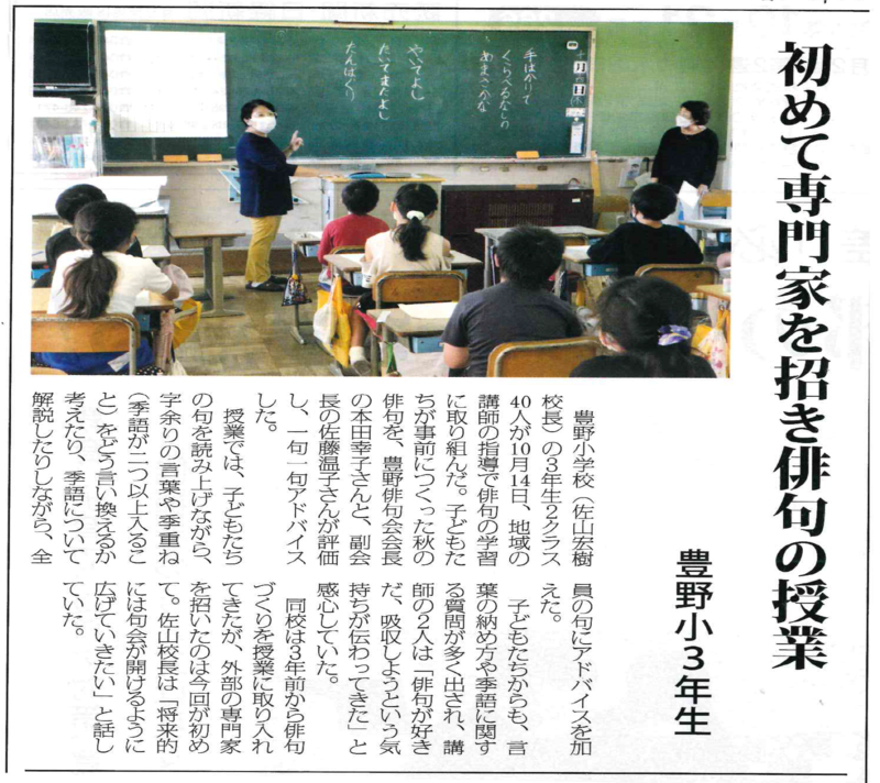 先日3年生がお世話になった豊野俳句会のお二人による授業の様子が、本日付の春日部ファミリー新聞に掲載されました。