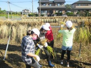 地域の方にご協力いただき、5月に植えた赤米を収穫しました。