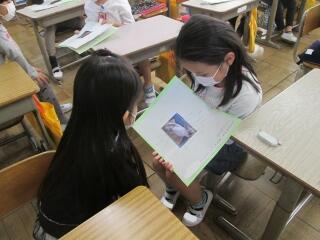 絵や写真を見せながら、見つけたことを友達に伝えました。