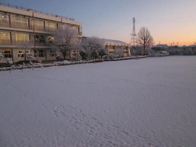今朝の豊野小学校の夜明けの様子です。朝日がまぶしいです。