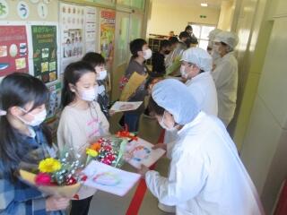 メッセージカードと花束を渡し、感謝の気持ちを伝えました。